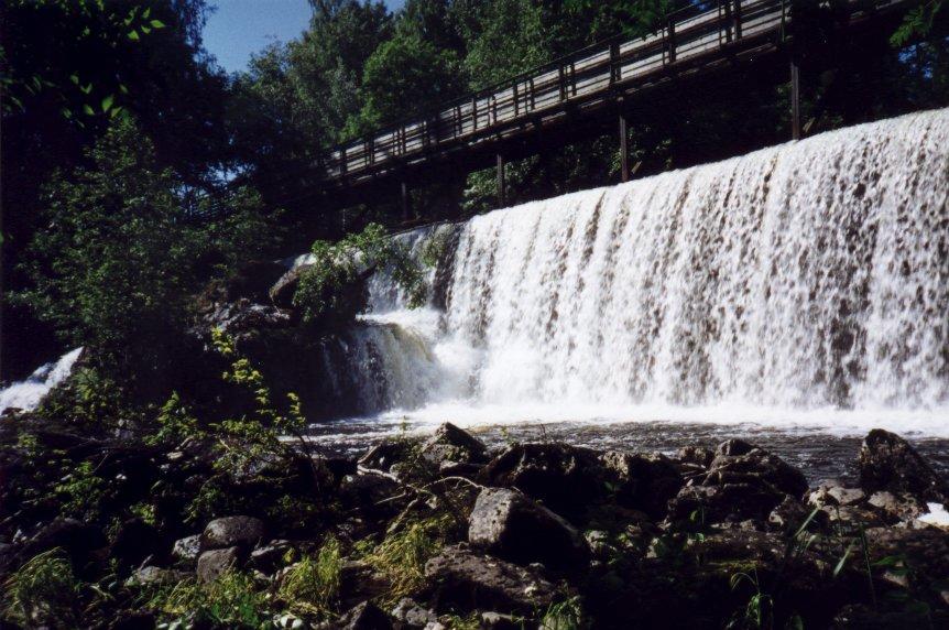 ...maar onder de brug dondert het water een aantal meter naar beneden...