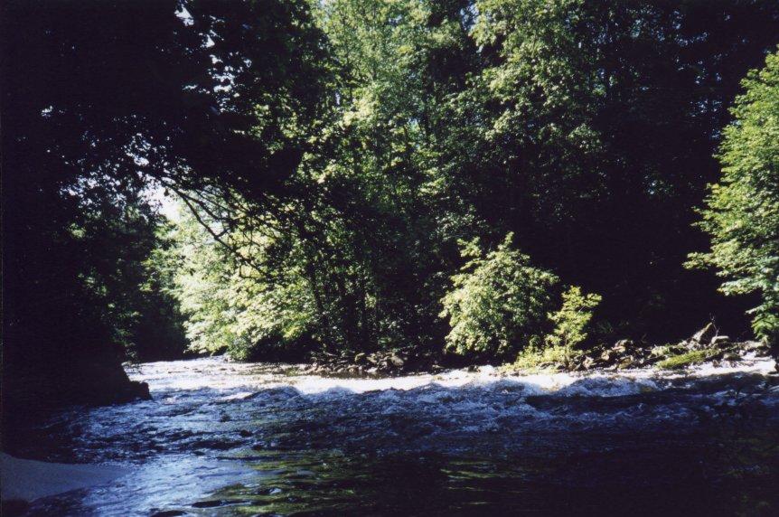 Uit deze beek heb ik twee kleine forelletjes van een cm of 7 gehaald. Harstikke mooie beessies in m'n aquarium!